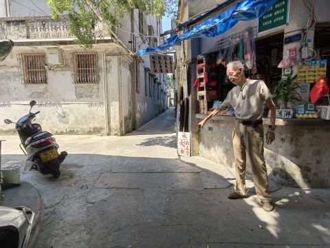 李祖伟在巷口介绍介公宫往事。刘春玉 摄