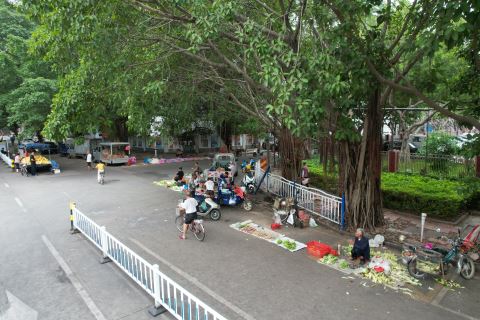 21日,记者在榕城区东湖路与东一街交界路口看到,有商贩占道摆摊设点经营、车辆无序停放,影响市容市貌和道路交通秩序。