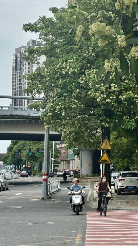 记者走访了解到,市区梅东大桥附近、临江北路、临江南路、梅兜路等路段均可闻到该气味。在部分小区,也可闻到该气味,在无风时尤为浓郁。实际上,该气味为糖胶树花开散发的气味。糖胶树为常见的行道树、庭荫树,眼下是糖胶树集中开花,树枝上挂满一簇簇白花,正是花朵散发出特殊的气味扑面而来。