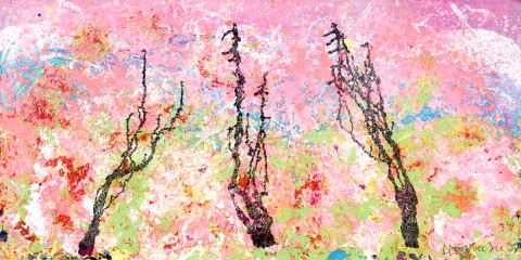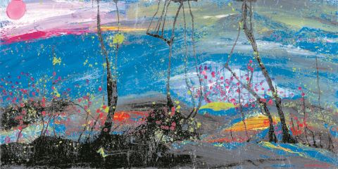 此次展览共展出刘佑局近年来创作的代表作品39幅,涵盖油画、综合材料及中国传统水墨。整个展览空间以“界”与“无界”两部分构成:前半部分呈现具象与抽象的交叠,后半部分则以光影、线条与虚实构筑出一种“幻象的秩序”。在这些画作中,刘佑局将西方现代艺术的抽象张力,巧妙地编织进东方哲学的内省之境,让《三生万物》的空灵禅意与罗马的古典气韵隔空对话,借《神秘的小岛》的深邃思索打破时空桎梏。在《荆丛》中,空间被反复切割与重组,现实的秩序被撕开,使观者在裂隙中寻找意义;在《光影交错》中,光与色被极度稀释,物象似在消散之中重生。