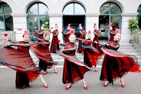 下图:10月27日,在湖北省武汉市群众艺术馆,武汉金楚舞蹈团的老人们学习民族舞蹈。新华社 发