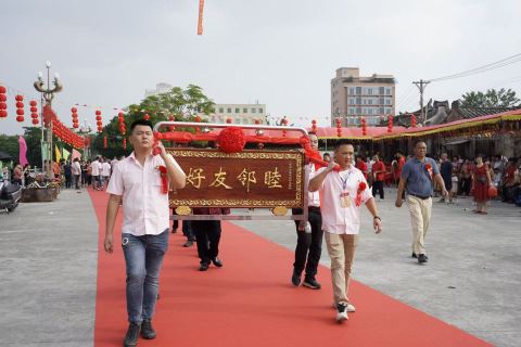 榕城区创新运用法治思维及方式,构建基层矛盾预防化解新机制。图为友好村互赠“睦邻友好”牌匾。通讯员 摄