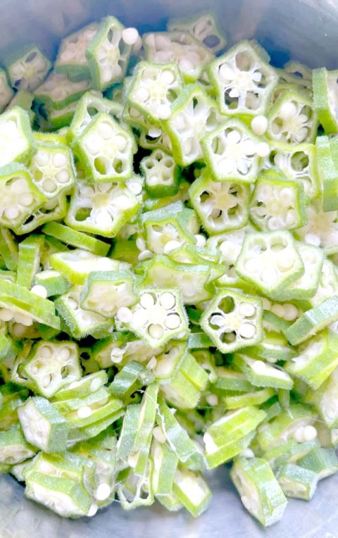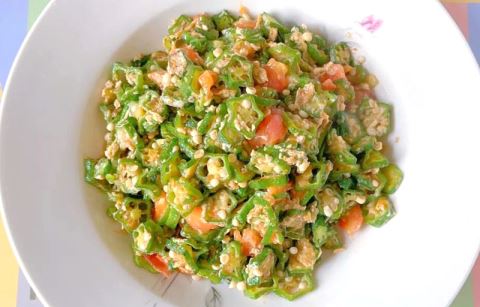 秋葵、鸡蛋、番茄。