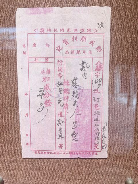 樟林永定楼侨批展览馆挂着的一副对联:千里春风劳驿使,三秋芳信托邮人。