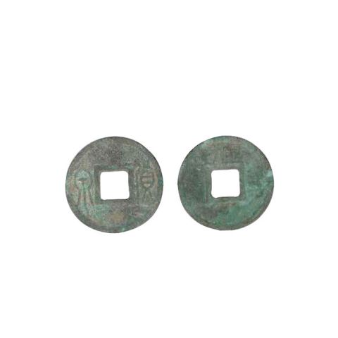 圆形方孔,内外均有周廓,方孔两边有篆体“货泉”二字。货泉是王莽天凤元年(公元 14 年)第四次货币改制的产物,从天凤元年起流通到东汉光武帝建武十六年 (公元 40 年)。