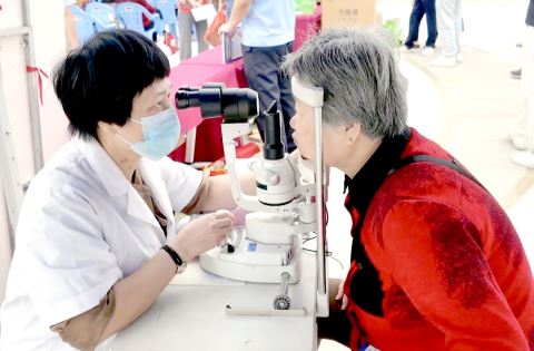 活动现场还设置多个互动体验区。巧手匠心区内,老人们动手制作手工驱蚊香囊,感受非遗魅力,同时学习基孔肯雅热预防知识;健康守护区内,专业医生提供免费视力检查(见图。胡旭莹 摄)、眼底疾病筛查和眼健康咨询,普及用眼保健知识;智慧助老区重点开展反诈宣传,讲解诈骗防范技巧并推广“国家反诈中心”APP,同时辅导掌握智能手机常用功能,帮助老年人乐享智慧生活;养生交流区则提供四季养生和饮食调理知识讲解,并准备了应季养生茶饮供大家品尝,倡导健康生活方式。 |