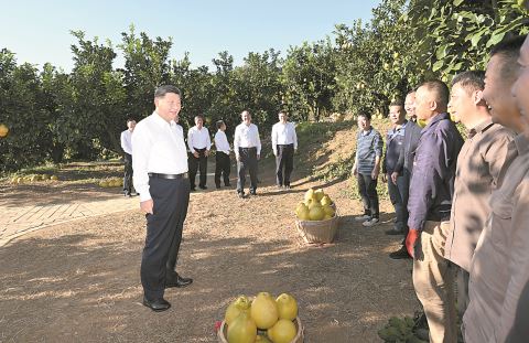 离开时,习近平同村民们亲切道别。他叮嘱,党和政府要继续加强对老区的政策扶持,老区广大干部群众要齐心协力、奋发图强。他祝愿乡亲们的日子过得像金柚一样又甜又美。