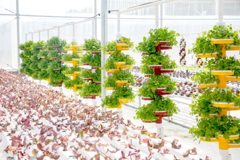 公园里的现代化立体种植大棚。综 图