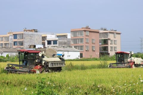 本报讯 (记者 李辉娜 通讯员 杨晓华 曾海青) 金秋时节,揭西大地稻浪滚滚、金满田畴,全县晚稻陆续进入成熟收割期。从棉湖、坪上镇到凤江镇阳夏片区,田野间处处是繁忙的秋收景象,农户们抢抓晴好农时抢收稻谷,揭西县农业农村局技术人员深入田间提供专业指导,机械化收割高效推进,共同奏响秋日里的“丰收曲”,全力确保秋粮颗粒归仓(见上图。通讯员 摄)。