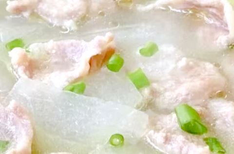 冬瓜、猪肉、葱、姜、盐、胡椒粉、淀粉、生抽、料酒。