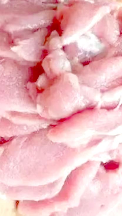 2.将猪肉切片,放入碗中,加入适量的盐、胡椒粉、生抽、料酒和淀粉,用手抓匀腌制10分钟,使肉片更加入味且滑嫩;