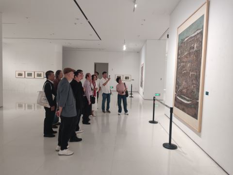 作为土生土长的广东艺术家,林顺文师从岭南画派名家及中央美院重彩画教授,深耕传统笔墨数十载,更历经五年壁画考察写生,从敦煌莫高窟、山西永乐宫壁画中汲取养分,形成独特的“现代色墨和山川组合重构”创作语言。展览中的每件作品均可见艺术家对传统材料的创新运用——将古法矿物颜料与现代构图结合,借鉴西方绘画表现形式的同时,重拾中国画色彩精髓。正如艺术评论家所言,这些作品“深研传统却不被束缚,以写生为基础进行重构,让岭南山川在色墨交响中焕发新生”。