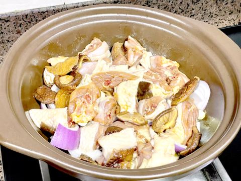 制作土鸡煲时,需要土鸡、香菇、葱、姜、蒜、洋葱等食材。首先,土鸡洗净斩成3 ~ 4厘米的方块,冷水下锅,加3片姜和1勺料酒,大火煮沸撇去浮沫后再煮3分钟,捞出用温水冲洗沥干;其次,干香菇用40℃温水泡发30分钟,过滤泡菇水备用。再次,砂锅擦干后小火预热,放入洋葱块、剩余姜片、蒜瓣和一半葱段炒出香味,倒入土鸡块和泡发好的香菇,翻炒至表面微焦,再用生抽、老抽、蚝油、白糖、十三香及过滤后的香菇水调成酱汁,沿锅边淋入翻炒均匀,盖上锅盖转小火焖煮15分钟(中途开盖翻拌一次,避免粘锅)。最后,关火后焖3分钟,撒上剩余葱花即可趁热食用。