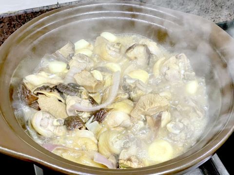 制作时需要注意:土鸡焯水需用冷水,才能充分逼出腥味;捞出后忌用冷水冲洗,以防肉质收缩变柴;砂锅需小火慢烘预热,避免骤冷骤热开裂;焖煮全程保持小火,可防止酱汁糊底。涮煮配菜建议优先选择耐煮易吸味的食材,先放入玉米等耐煮品类,最后放蔬菜,口感更有层次。