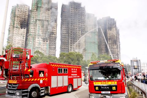 香港新界大埔区宏福苑26日下午发生五级火警。记者26日晚间至27日清晨在现场看到,特区政府有关部门正全力扑灭火灾,在社会各界的协助下妥善安置受灾居民,千方百计降低损失。