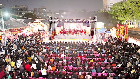 11月28日晚8时,榕城区东升街道东泮村王氏家庙前,首场古城“村”晚在这里正式开演(见图。杨小琪 林碧鸿 摄)。