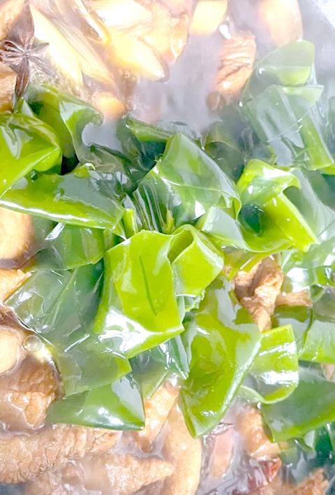 5.加入切好的海带,炖煮40分钟后,大火收汁就好。 阿 萍 春 晖 文/摄