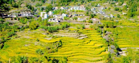 山村梯田稻谷黄