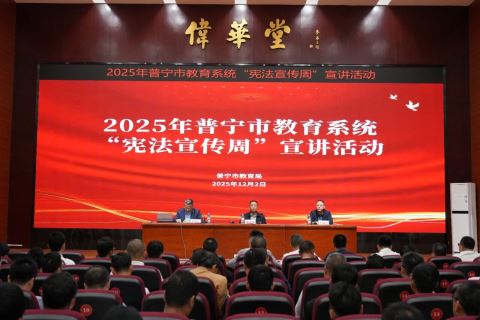 本报讯(记者 洪炯珊 通讯员 邱敏君) 2日下午,普宁市教育局在普宁市华侨中学举行普宁市教育系统“宪法宣传周”宣讲活动。普宁市教育系统有关同志、各中小学校(含中职学校)分管副校长、骨干教师,近两年新任校长等齐聚一堂,共同接受宪法精神的熏陶。