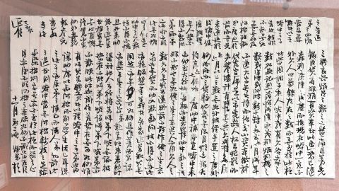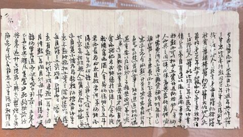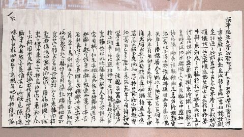 樟林永定楼侨批展览馆A展厅展出的清末民初篇幅最长的侨批。 吴俊才 蔡幼芳 摄
