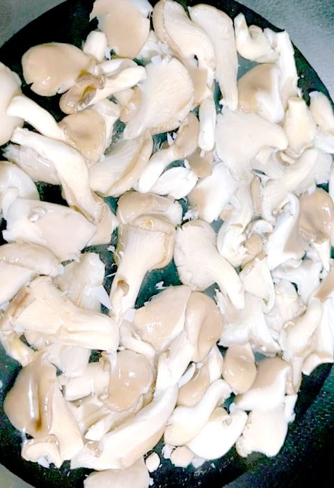4.倒入焯好的秀珍菇,转中火快速拌炒1分钟,让菌菇充分吸收酱汁风味;
