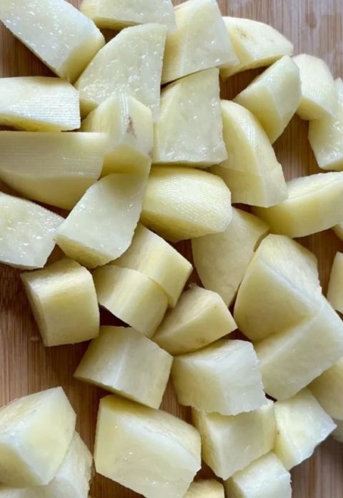 2.土豆去皮,切成滚刀块,浸泡在清水中,洗去表面淀粉;