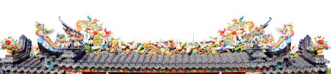 “嵌瓷内容丰富多样,与潮汕地区的文化、历史、民俗等紧密相关,彰显出鲜明的地域特色,承载着深厚的人文内涵。”陈伟钦告诉记者,嵌瓷在不同的应用场景中有不同的内容和造型讲究。比如,寺庙多以龙凤等瑞兽及花鸟为主,神话传说、英雄人物多呈现于祠堂,潮剧戏出多装饰于民居。庙宇屋脊常见龙凤呈祥、麒麟献瑞,线条粗犷有力,构图气势雄伟,色彩晶莹绚丽,寄托国泰民安、风调雨顺的祈愿;脊头和屋角头的嵌瓷,主要是文武加冠立体人物,原型多来自于《三国演义》《封神榜》中的角色,寓意扬正压邪、忠君爱国、功成名就;檐下墙壁多以花卉、鸟兽、鱼虾、昆虫为主,营造了自然生动的生活气息;照壁上的嵌瓷,常见的是麒麟、狮、象、仙鹤、梅鹿等,象征吉祥、长寿、平安等;室内大厅后彩眉的嵌瓷,则常见郭子仪拜寿、太公遇文王等历史典故,寓意家族的繁荣与昌盛……那些看似繁复绚丽的组合,实则深植着中华民族仁义礼智信的核心价值,将潮汕人的家国情怀和美好愿望凝结于片瓷方寸之间,形成一道璀璨夺目的文化景致。