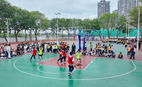 揭阳林超纪念中学学生进行篮球比赛。杨小琪 摄