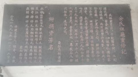 照壁余祖厅重修记石刻载余氏于清乾隆年间从鮀浦迁来。余剑宝 摄