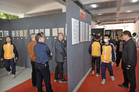 展览现场,一幅幅佳作整齐陈列,或笔力遒劲,或清秀隽永,每一笔一画划都凝聚着创作者的心血与对传统文化的热爱,让观展师生沉浸式感受汉字之美与文化之力。而新揭牌的“书香教室”,更是为校园书法教育注入新动能。这间功能专业的教室不仅配备完善教学设施,更将成为传承文化的阵地、培育人才的摇篮,让学生在系统化学习中亲近书法艺术,涵养审美情趣与文化自信。