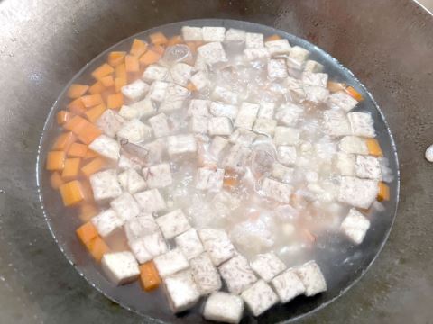 烹饪过程需循序渐进,火候是关键:第一步,锅中烧沸水,放入芡实先煮2分钟,再放入萝卜粒一起煮1分钟,捞出沥干水分备用。第二步,砂锅中倒入猪骨高汤,放入处理好的芡实,转小火慢煮20分钟,直至芡实变得软糯弹润,入口有嚼劲却不生硬。第三步,另起锅倒入适量食用油,待油温升至六成热,放入香芋丁炸至表面金黄,然后捞出控油。第四步,打开砂锅,放入焯好的萝卜粒,加入适量盐和白胡椒粉调味,煮2分钟让味道融合;随后放入炸好的芋丁和腌好的鲜虾仁粒,继续煮3分钟,直至虾仁熟透变色。最后,撒上芹菜粒,关火焖1分钟,让食材香气充分交融,即可装盘享用。