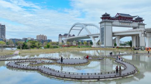 榕城区综合立体交通基础设施网络完善便利。图为进贤门大桥附近莲花池新修建的赏荷步道。