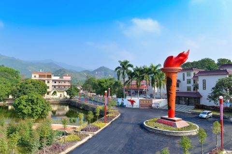 揭西县火炬村乡村旅游景区位于揭西县南山镇东北部大北山下,火炬村原名龙跃坑村,1958 年为纪念解放战争时期的突出贡献更名,寓意“星星之火,可以燎原”。火炬村具有丰富的红色革命资源,是解放战争时期潮汕人民抗征队诞生地和司令部驻地,保存有中共潮汕地委旧址、潮汕人民抗征队成立旧址等 7 处完好的革命旧址。近年来依托红色村党建示范工程,深度挖掘利用火炬村红色资源,建成双拥广场、宣誓广场、红色研学基地等设施,建设红色火炬美丽宜居示范村精品线路,擦亮“山水龙跃,红色摇篮”品牌。火炬村先后获评“国家森林乡村”、“广东省红色村党建工程示范点”、“广东省文化和旅游特色村” 等荣誉,是集红色教育、生态观光、休闲体验于一体的旅游胜地。