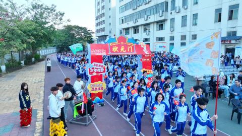 普宁市中博职业技术学校高考壮行仪式。杨小琪 摄