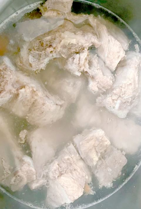 1.先将排骨用水冲洗干净,放入冷水锅中焯水,然后将排骨捞出来,清洗去表面的浮沫;