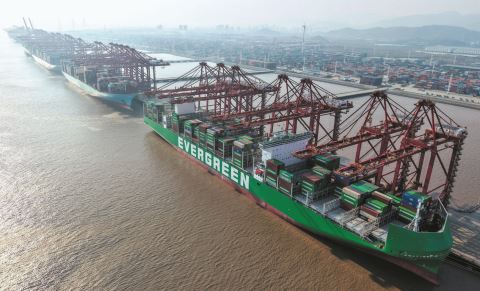 近日,记者从宁波舟山港获悉,2025年宁波舟山港完成货物吞吐量超14亿吨,连续17年位居全球第一,宁波舟山港也由此成为全球首个年货物吞吐量超14亿吨的大港。图为2026年1月8日货轮停靠在宁波舟山港梅山港区码头。新华社 发