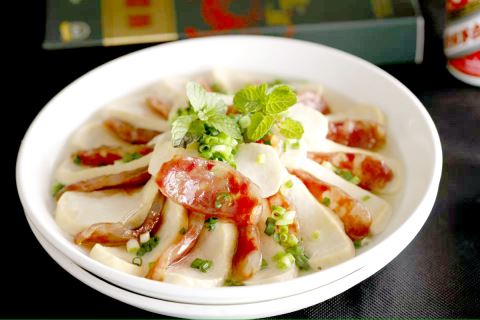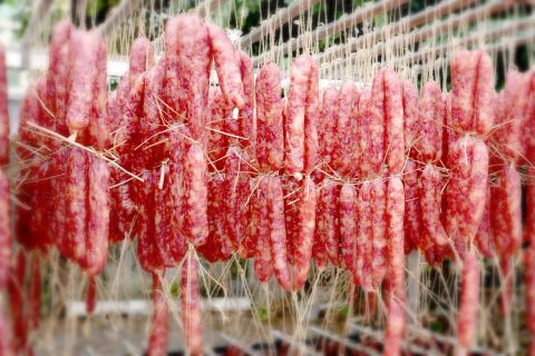 腊肠,俗称灌肠、香肠,是一种民间传统美食。中国腌制腊肠的历史源远流长,北魏贾思勰所著的《齐民要术》中,就有已知腊肠的较早记载:“取羊盘肠净洗治,细剉羊肉,令如笼肉,细切葱白,盐豉汁、姜椒末,调和,令咸淡适口,以灌肠,两条夹而炙之,割食甚香美。”明确记载当时已有“灌肠法”。以肉类制作腊肠,不仅能长时间贮存,而且熟制后风味更加醇厚,在民间备受欢迎,千百年来广为流传。这门古老的食品加工智慧,不仅是先民储存肉食的生存智慧,更是人们对自然馈赠的深度理解和风味再造。