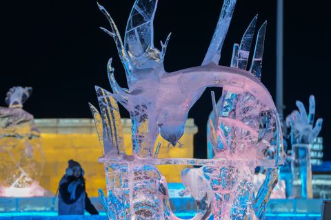 近日,一批冰雕新作在哈尔滨冰雪大世界亮相,与第37届中国·哈尔滨国际冰雕比赛作品及园区原有冰雕遥相辉映,共同点亮北国冬夜。 新华社 发