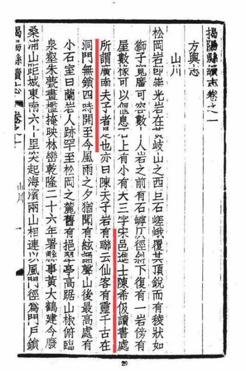 光绪《揭阳县续志》有关陈夫子岩表述。阿 龙 截图