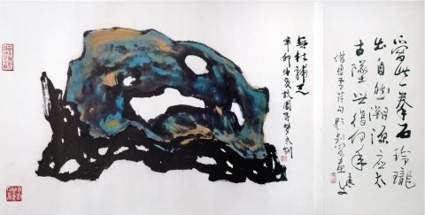 不难看出的是,家光先生的中国画,恰恰是在传统文人画向着现代延伸的余波中,以自己的笔墨演绎方式和格调,使“气韵”达成了独具的生动性。我看过家光先生的不少作品,尤其注意到了他在“望七”之年期间创作的几件山水与花卉巨幅。它们可能是画家几十年艺术追求中,一次较大的“发力”。