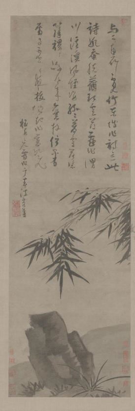 《墨竹坡石图》轴