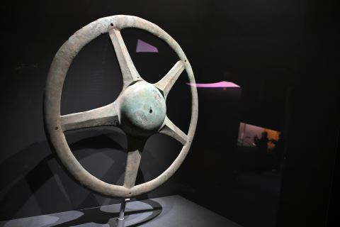 下图:这是展出的太阳形青铜器(1月18日摄)。新华社 发