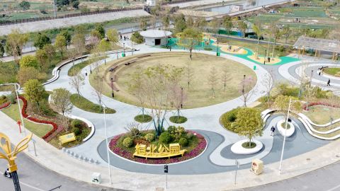 据了解,梅北公园占地面积8345平方米,打造了入口标识、环形廊架、景观坐凳、儿童游乐设施、健身器材等便民设施,配套环保地砖、园区沥青道路及透水混凝土、花岗岩石材人行道,种植乔灌木、草坪等,全面满足居民休闲、健身、娱乐、社交等多元化需求。