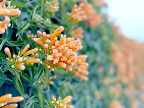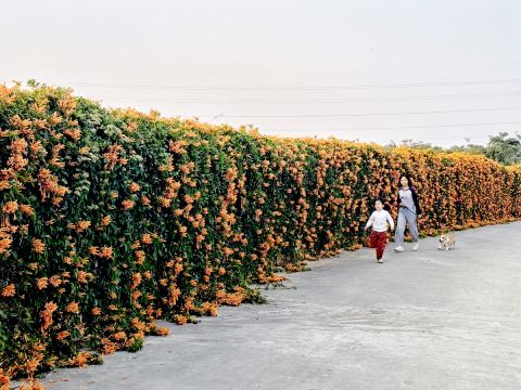 冬日的揭阳大地,炮仗花也迎来盛花期。揭东区桂岭镇鸟围村一村道上,一丛丛炮仗花攀着竹篱笆盛放,犹如橙红色的瀑布倾泻而下,美不胜收。