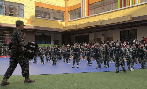 活动在庄严的升旗仪式中拉开帷幕。幼儿园办公室主任林卓晓在致辞中表示,希望孩子们通过活动学习军人坚韧不拔的意志和勇往直前的精神,在未来的学习和生活中,遇到困难不退缩,努力成为国家的栋梁之材。