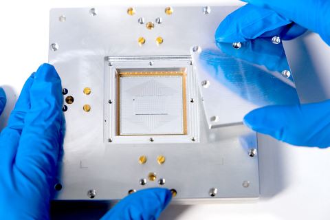 图为1月21日在中国科学院物理研究所实验室拍摄的78比特“庄子2.0”芯片。