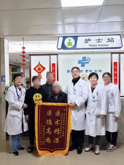 手术进行了2个半小时、出血100毫升。术后,第5天患者拔除导尿管,第6天康复出院。出院当天,李奶奶不再把子宫脱垂视为“难言之隐”而是“科学面对”,把一面写着“医术精湛,医德高尚”的锦旗送到张广亮教授及其医疗团队手里,表达她的感激之情。