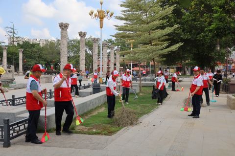 组织机关党员干部参加清洁家园活动。