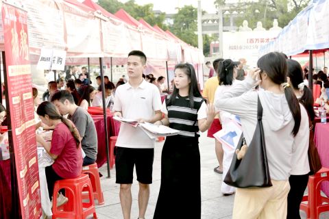 ③“百万英才汇南粤”——揭阳市2025年金秋招聘月大型招聘会吸引众多求职者。 林洁松 摄