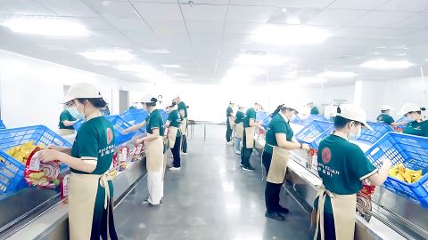 广西柳潮食品科技有限公司车间内,工人正在生产线上紧张忙碌。